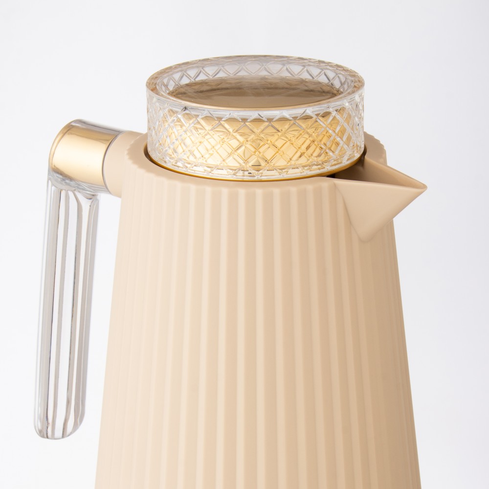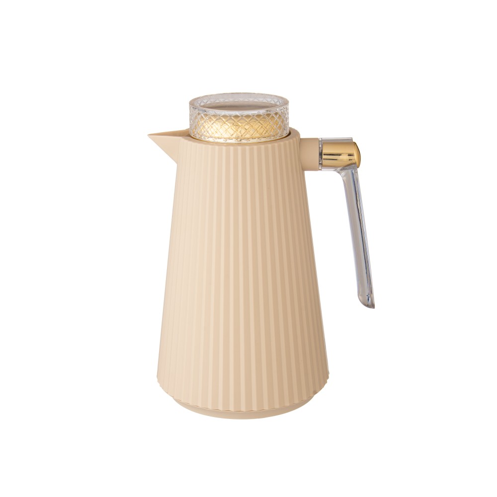 ترمس شاي وقهوة بيج ذهبي يد اكريلك 1 لتر