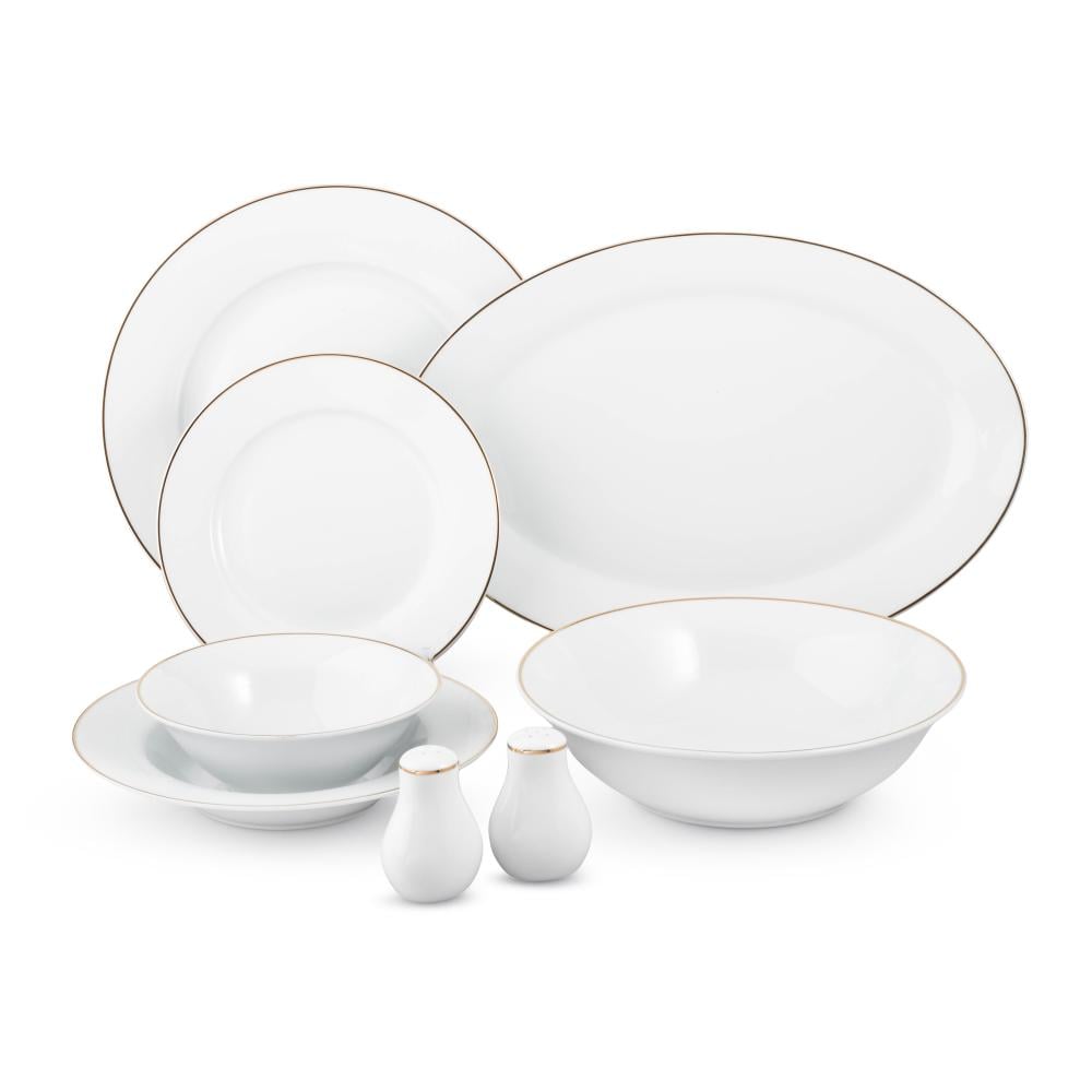طقم سفرة أبيض سادة بخط ذهبي 28 قطعة