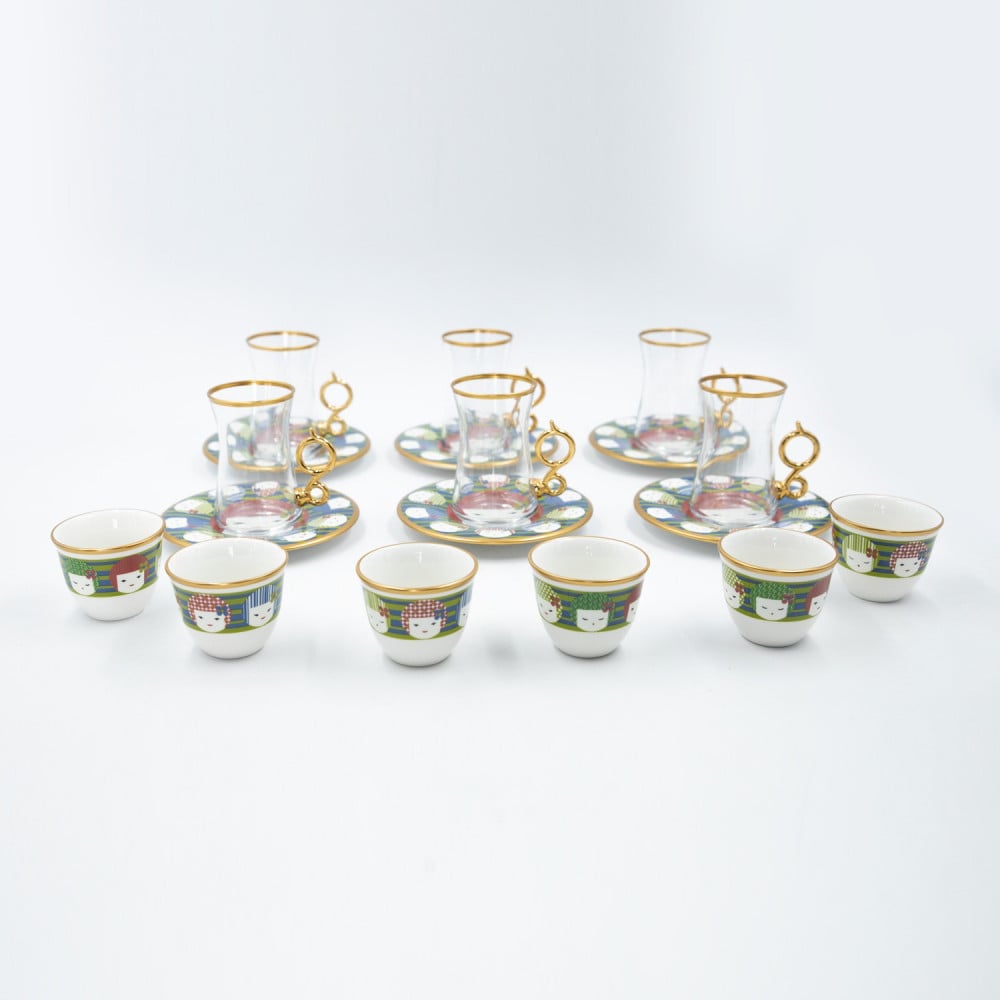 طقم قهوة وشاي 18قطعة من الزجاج والبورسلان: