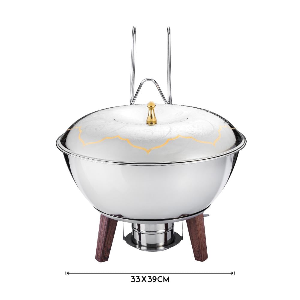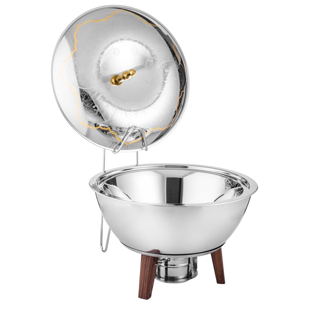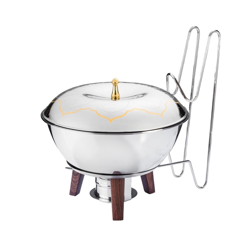 ✨ سخان بوفيه سناء – فخامة الضيافة بكل تفاصيلها ✨أضف لمسة من الفخامة والرقي إلى مائدتك مع سخان البوفيه سناء بتصميمه العصري الذي يجمع بين الأناقة الكلاسيكية والتفاصيل الحديثة. مصنوع بعناية من الستانلس ستيل الفاخر بلون فضي لامع مع لمسات ذهبية تبرز جماله، ومثبت على أرجل خشبية أنيقة تضيف ثباتًا وأناقة فائقة.