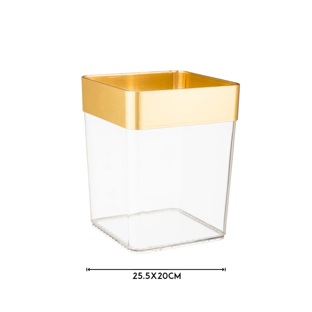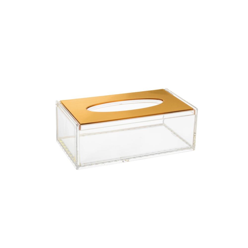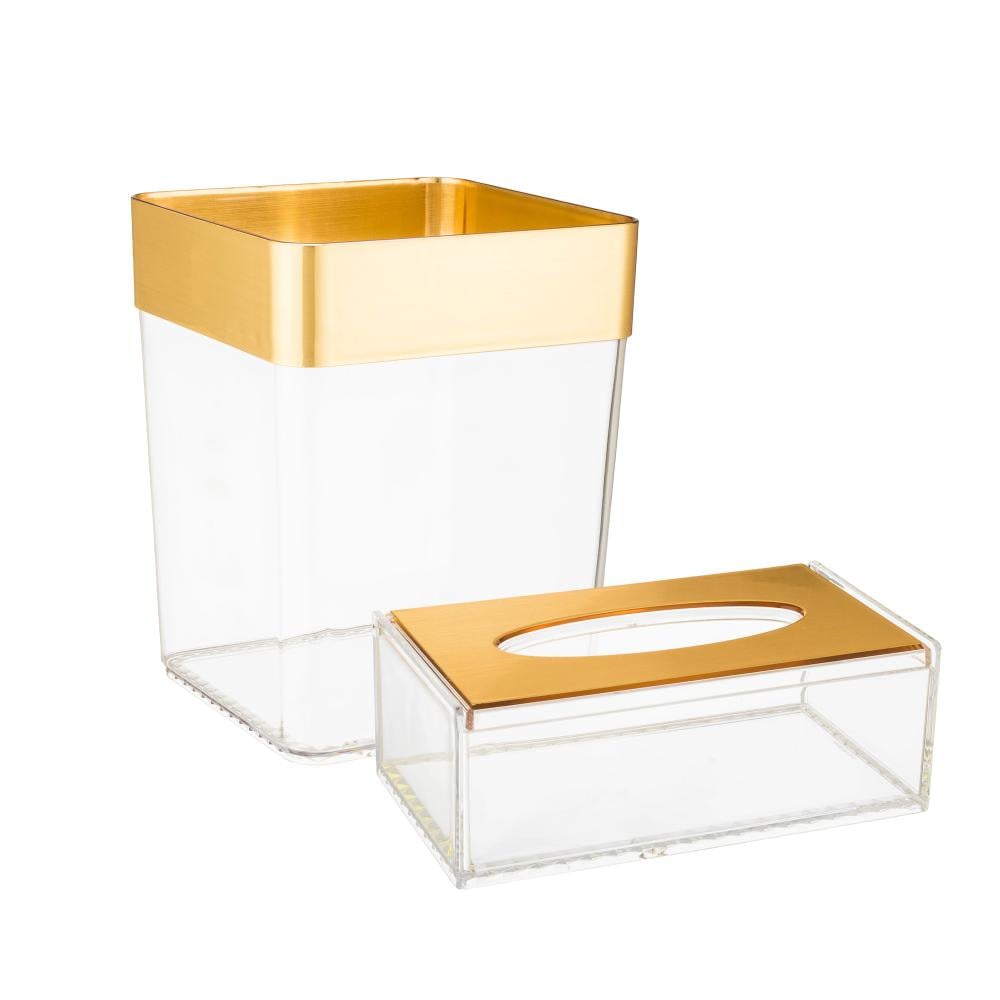 طقم سلة ومنديل اكرليك شفاف مربع مع ذهبي