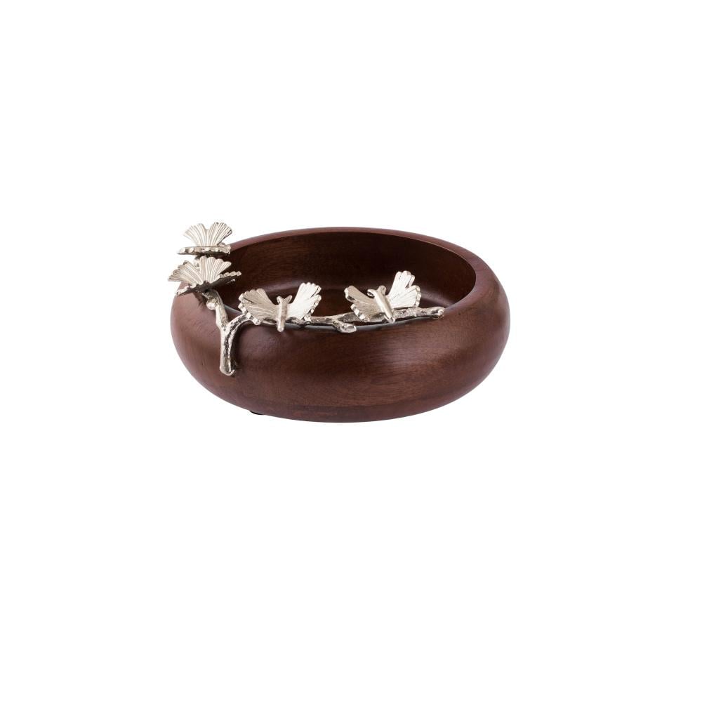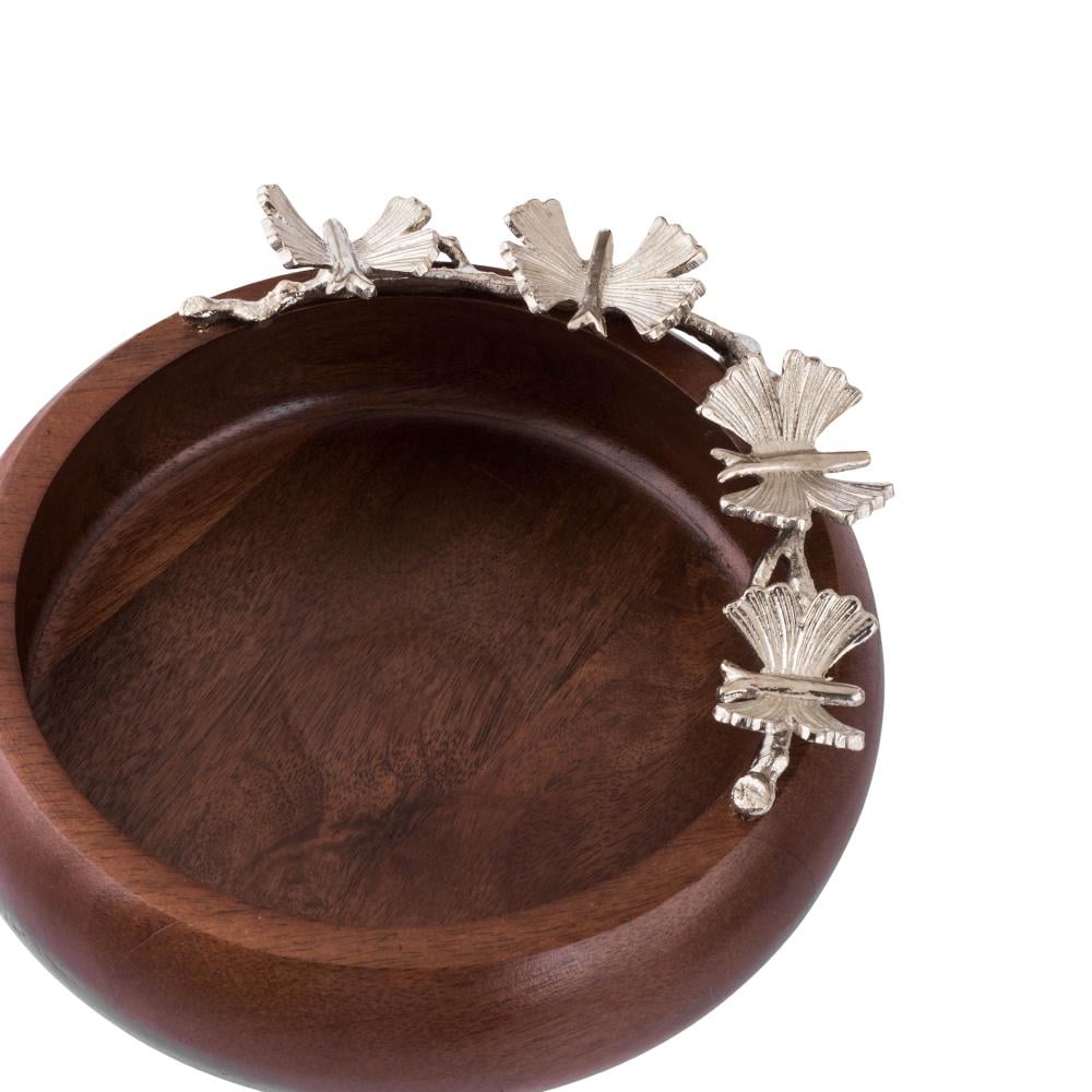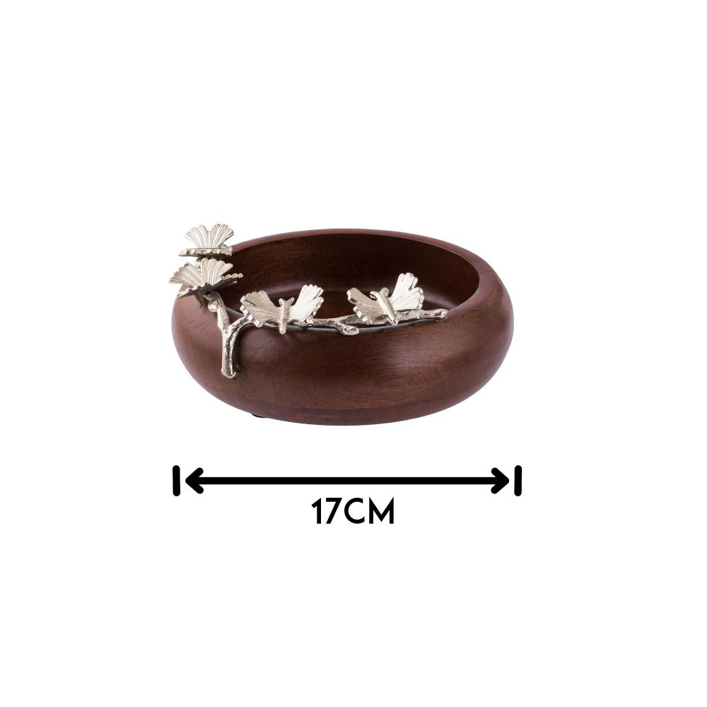 صحن مكسرات خشب هندي بديكور فراشات فضي