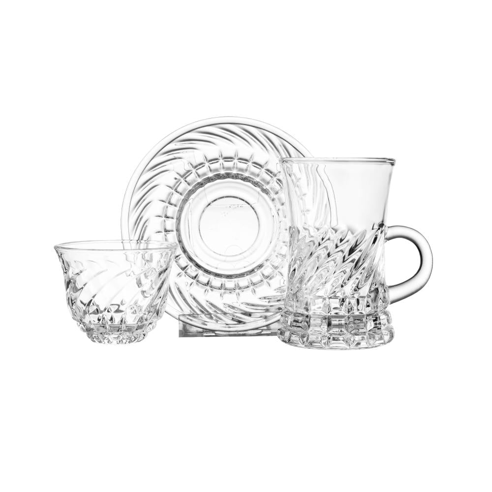 طقم فناجين شاي وقهوة زجاج محجر 36 قطعة