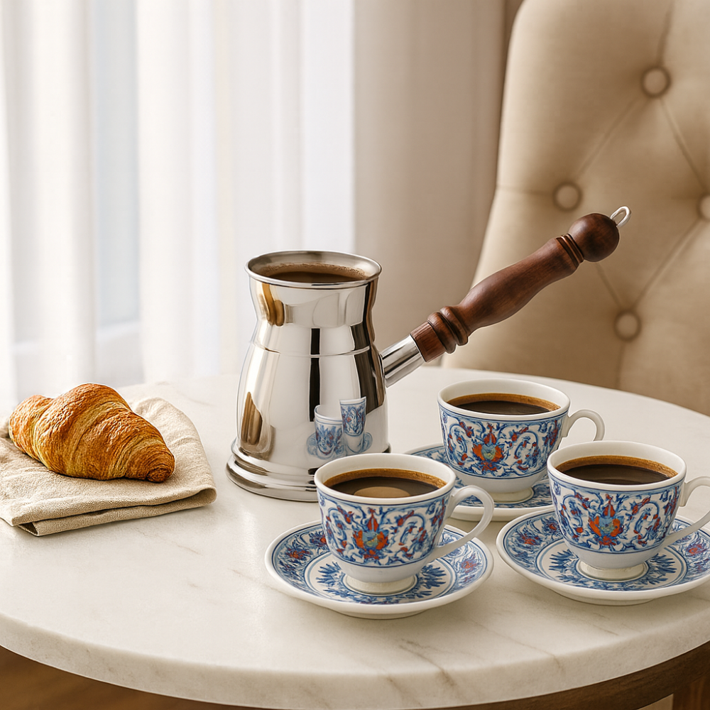 ركوة قهوة استيل هندي سعة 300 مل بيد خشب
