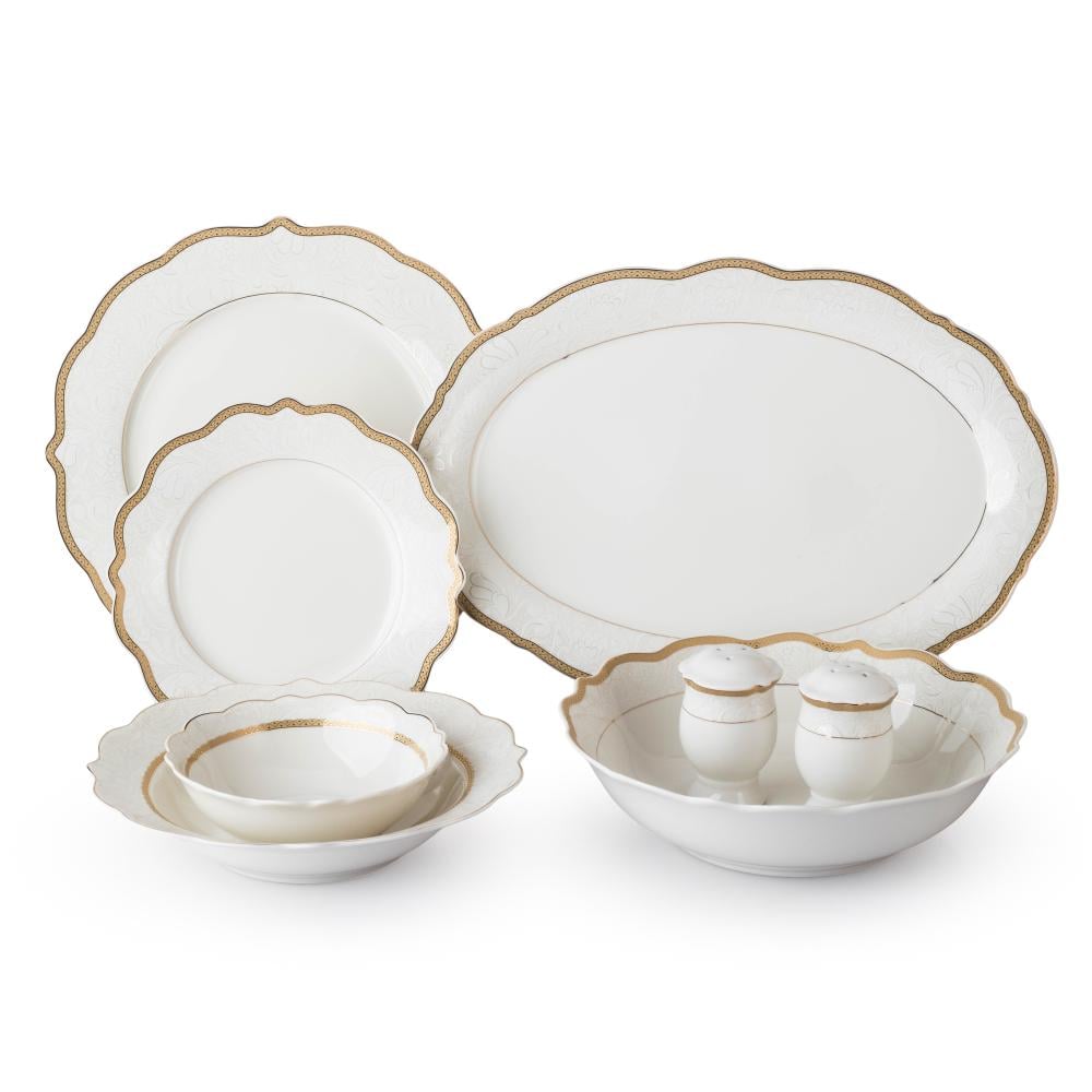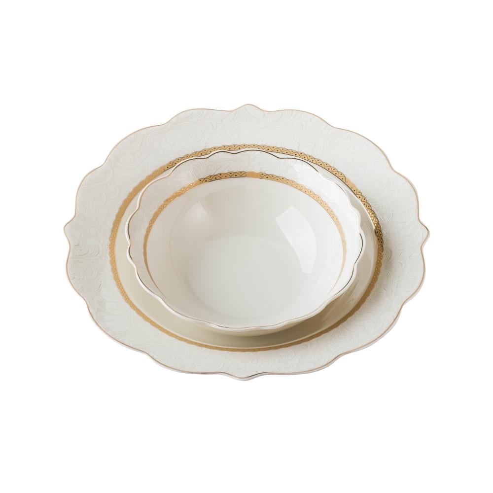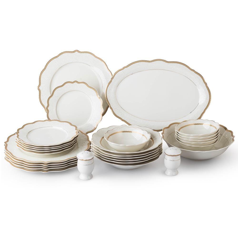 طقم عشاء بورسلان فاخر ابيض وذهبي بنقشات ناعمة 28 قطعة 6 اشخاص
