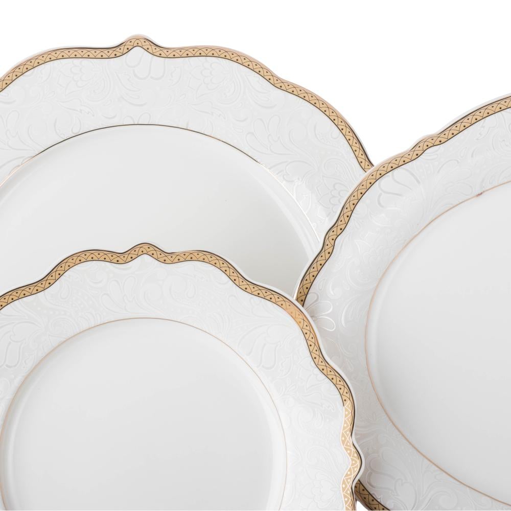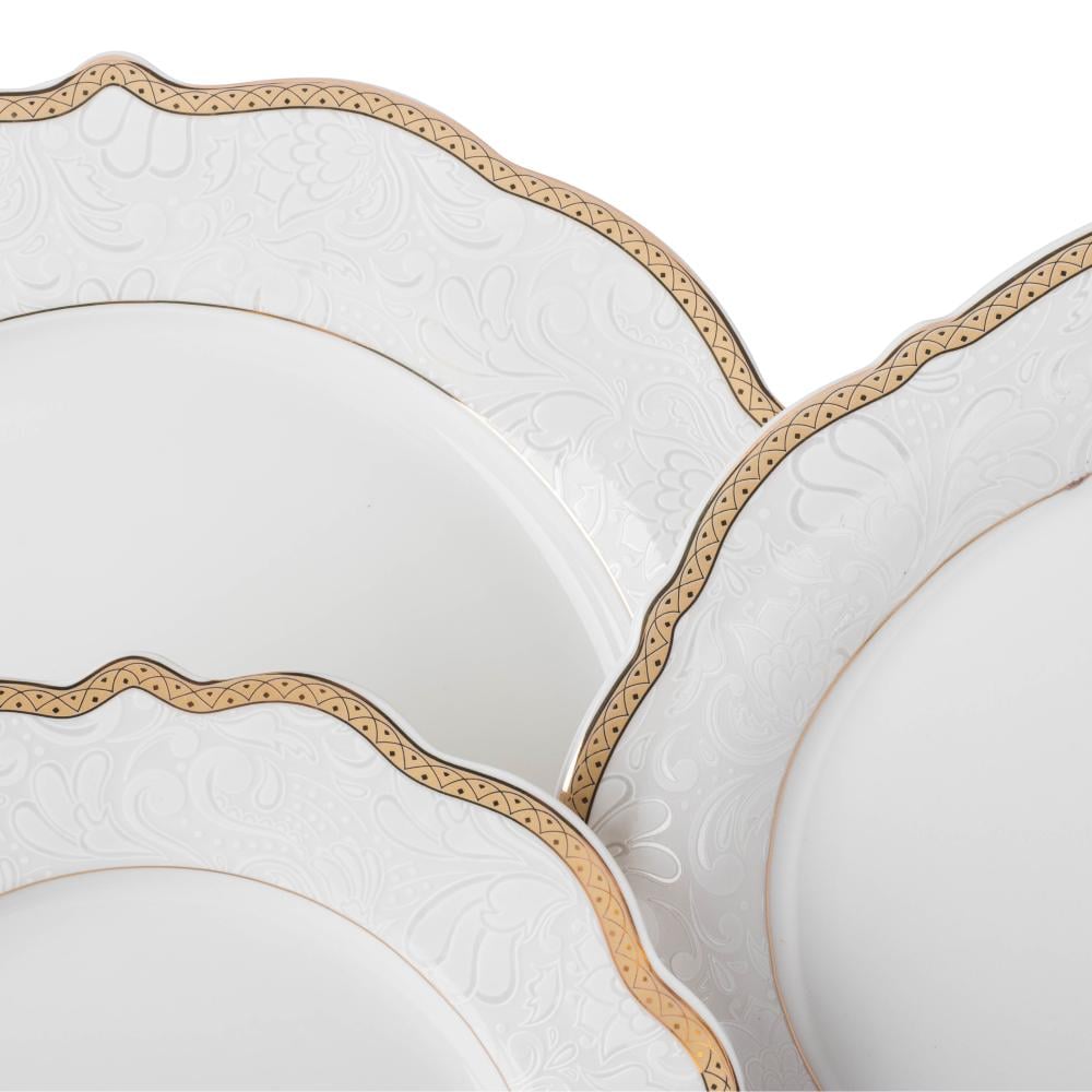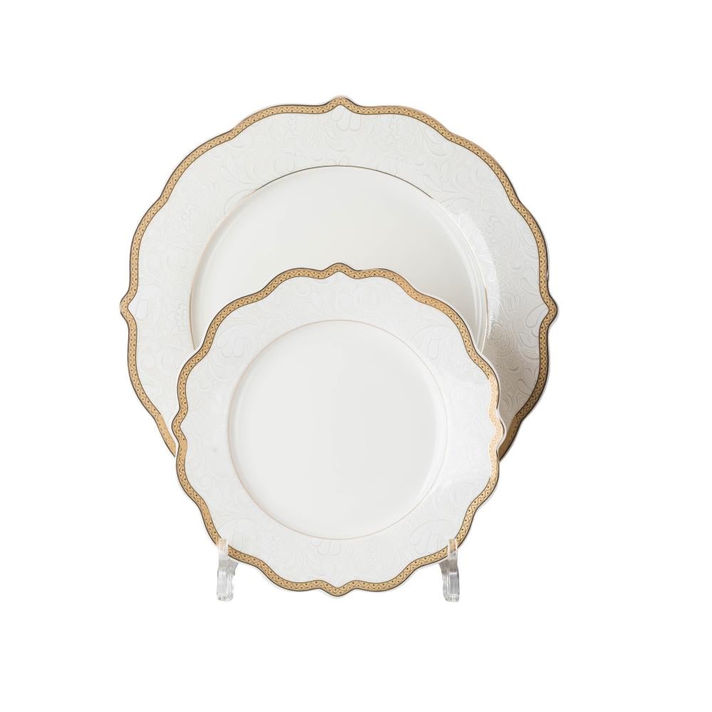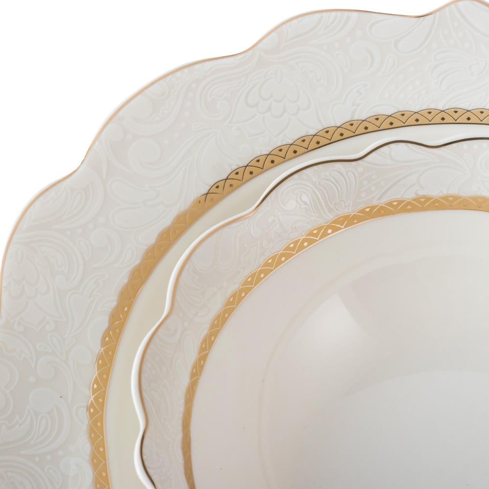 طقم عشاء بورسلان فاخر ابيض وذهبي بنقشات ناعمة 28 قطعة 6 اشخاص
