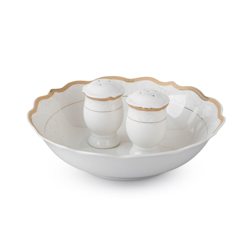 تصميمه المزدان بحواف ذهبية رقيقة يروي حكاية عن الرقي والجمال، وعن مائدةٍ تُرحّب بالضيوف بكل أبهى صورة.