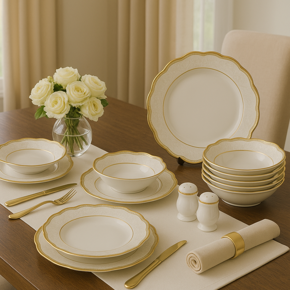 طقم العشاء البورسلان الفاخر – 28 قطعة – ليس مجرد أوانٍ، بل هو لمسة من الذوق الرفيع تحوّل كل وجبة إلى تجربة أنيقة مليئة بالفخامة.