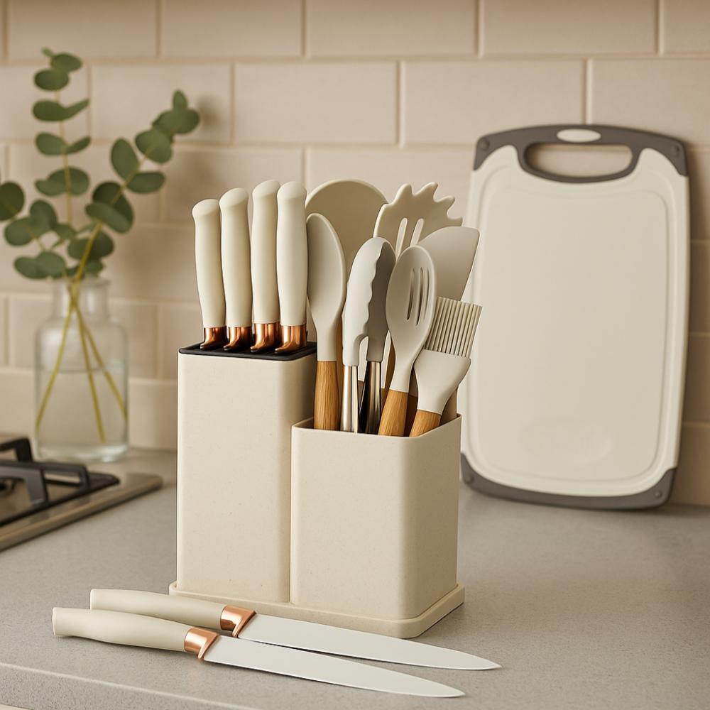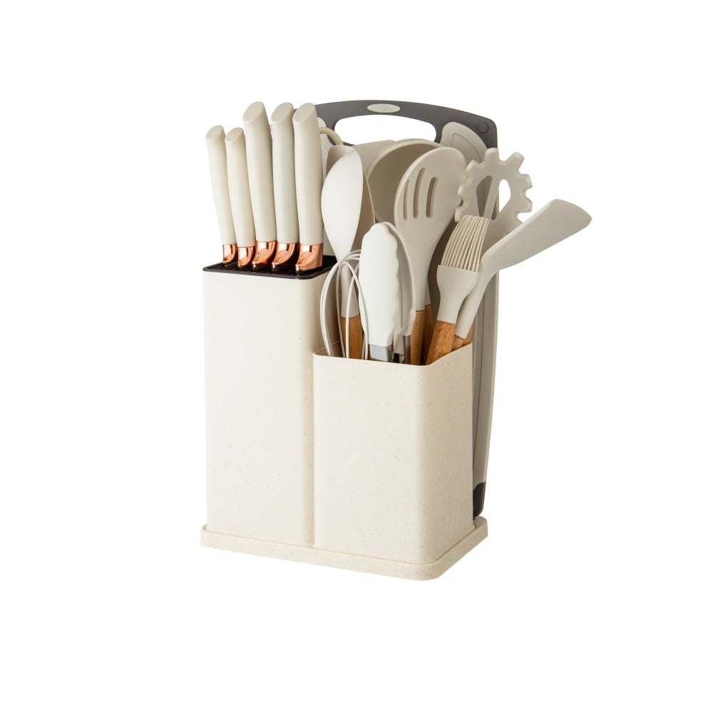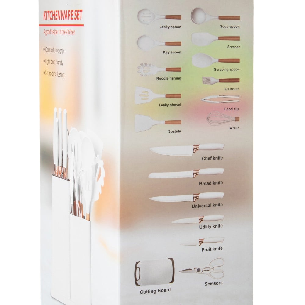 طقم ملاعق وسكاكين المطبخ ابيض 19 قطعة
