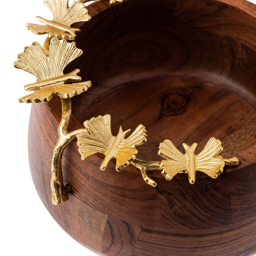 صحن مكسرات خشب هندي بديكور فراشات ذهبي