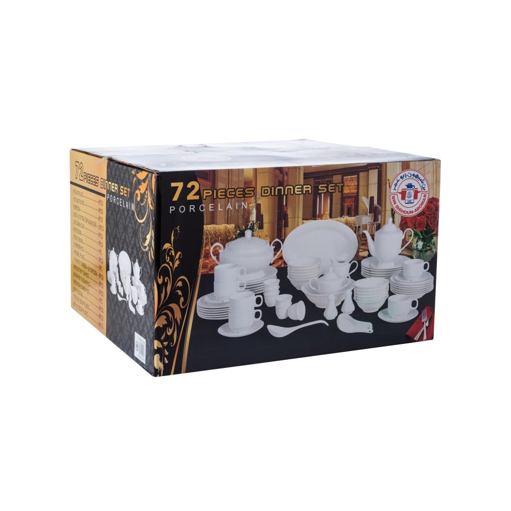 طقم سفرة بورسلان ابيض سادة 72 قطعة 6 اشخاص