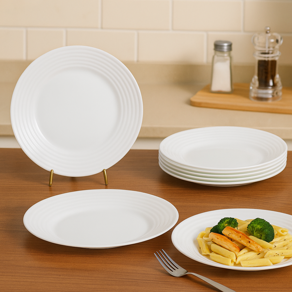 أضف لمسة من الأناقة البسيطة إلى مائدتك مع طقم أركوبال الأبيض السادة. يتميز هذا الطقم بتصميمه العصري الكلاسيكي باللون الأبيض الناصع مع حواف أنيقة تضفي جمالًا على كل وجبة.