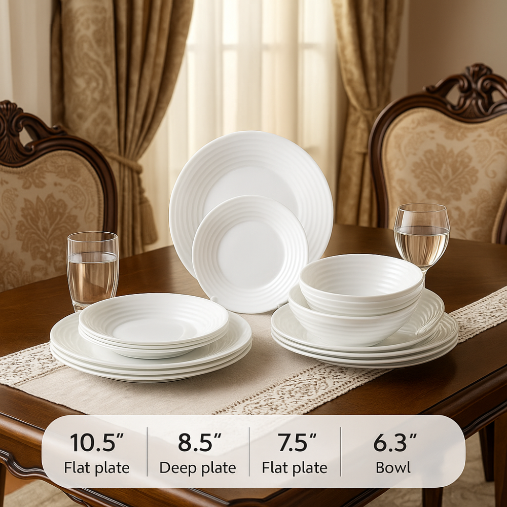 ✨ طقم عشاء أركوبال أبيض سادة – 24 قطعة تكفي 6 أشخاص ✨
