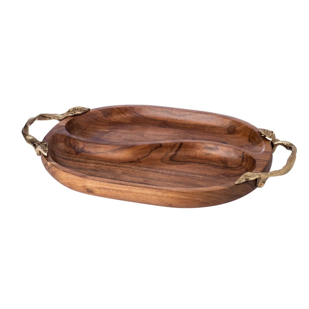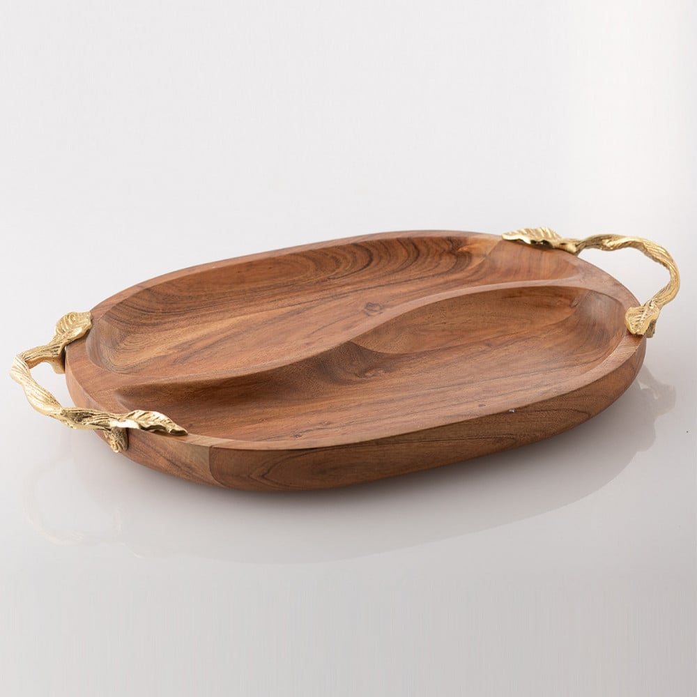 صينية تقديم خشب مقسم كبير يد ذهبي