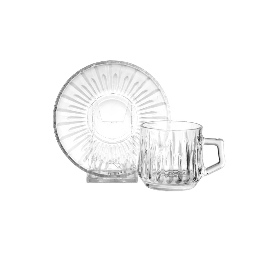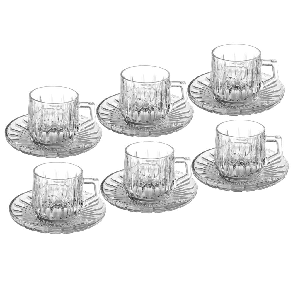 طقم اكواب شاي زجاج محفور مخطط بتصميم انيق ومميز 6 اشخاص 12 قطعة 185 مل