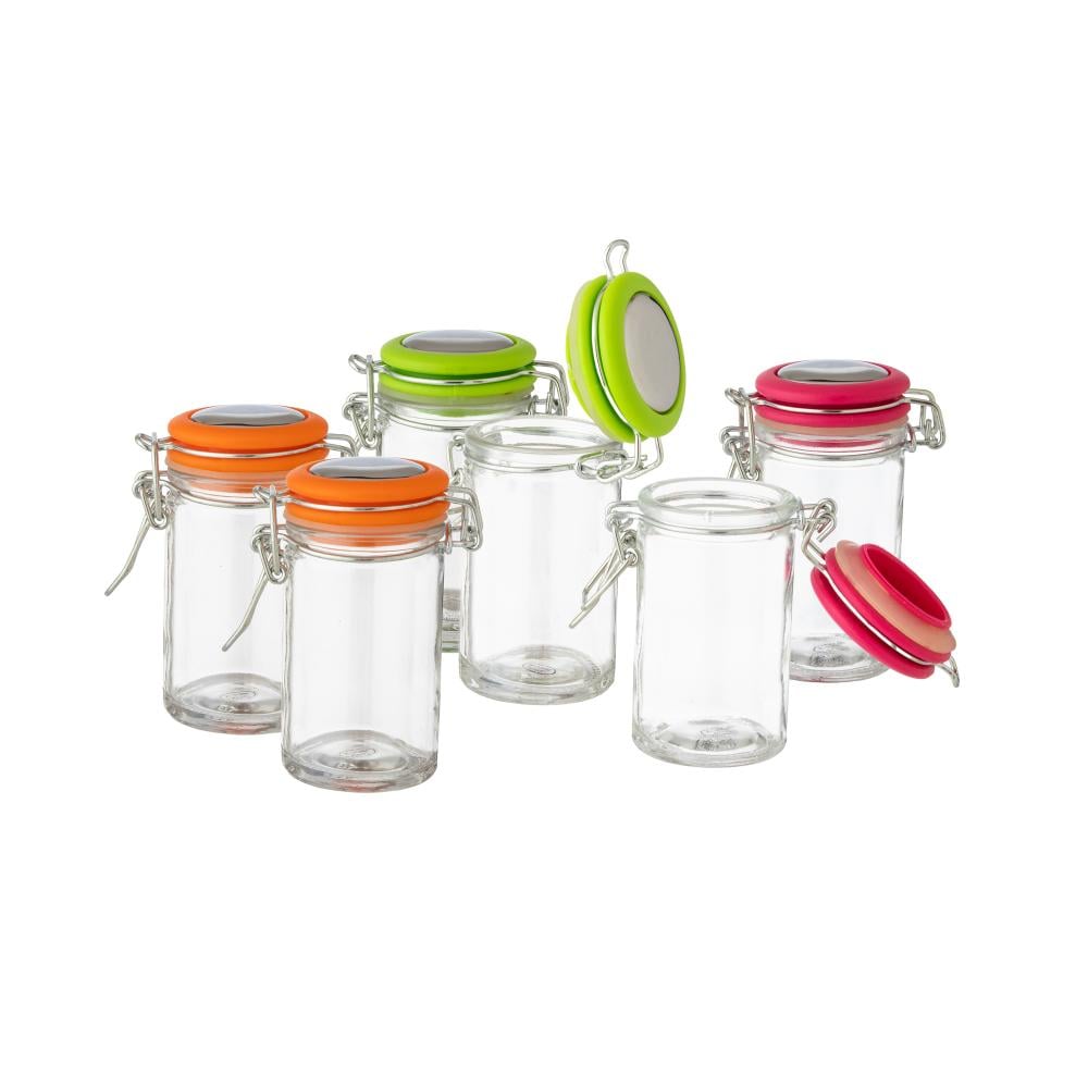علب بهارات صغيرة بغطاء ضغط ملون 6 قطعة
