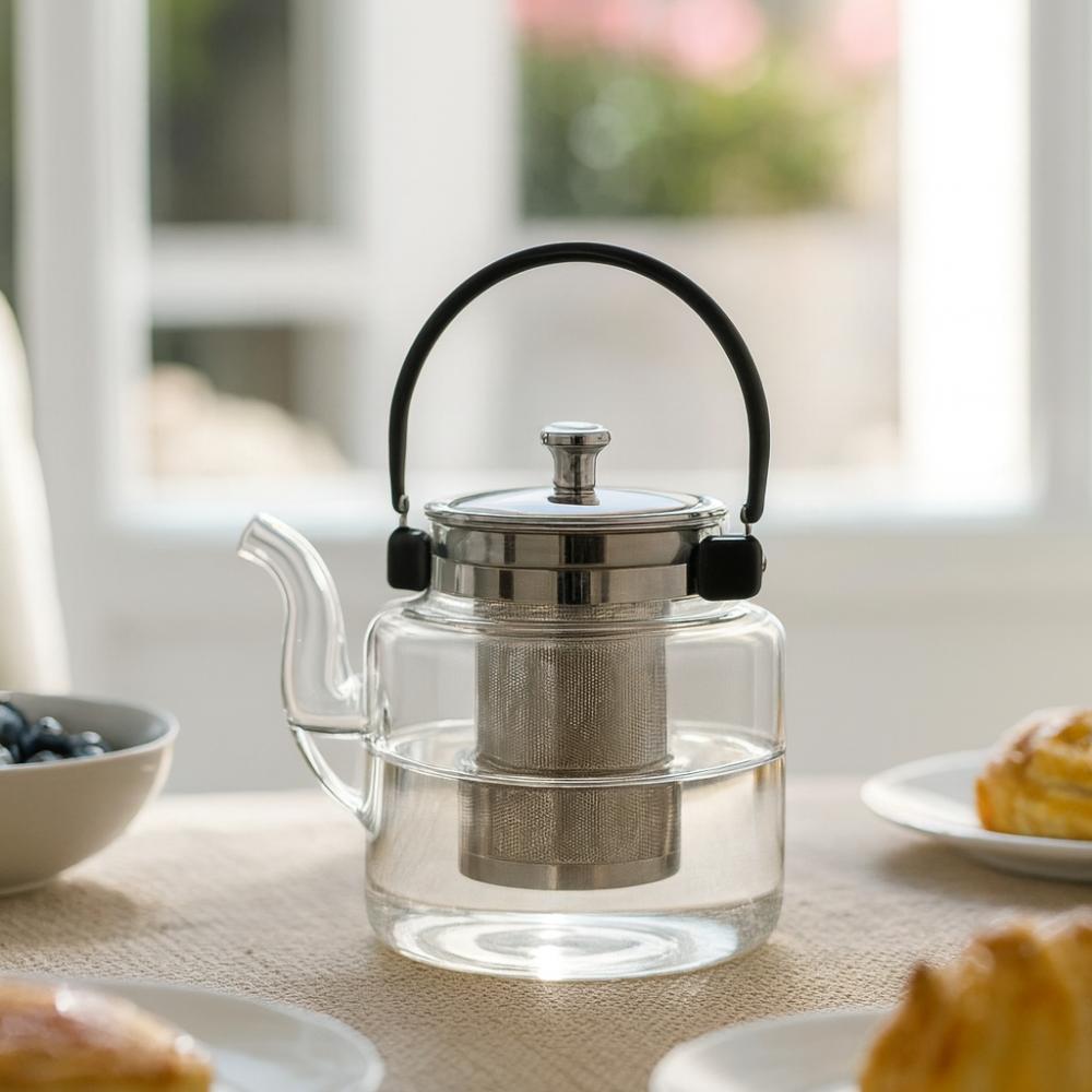براد شاي من الزجاج بسعة 1200 مل مزوَّد بمصفاة ستيل قابلة للإزالة