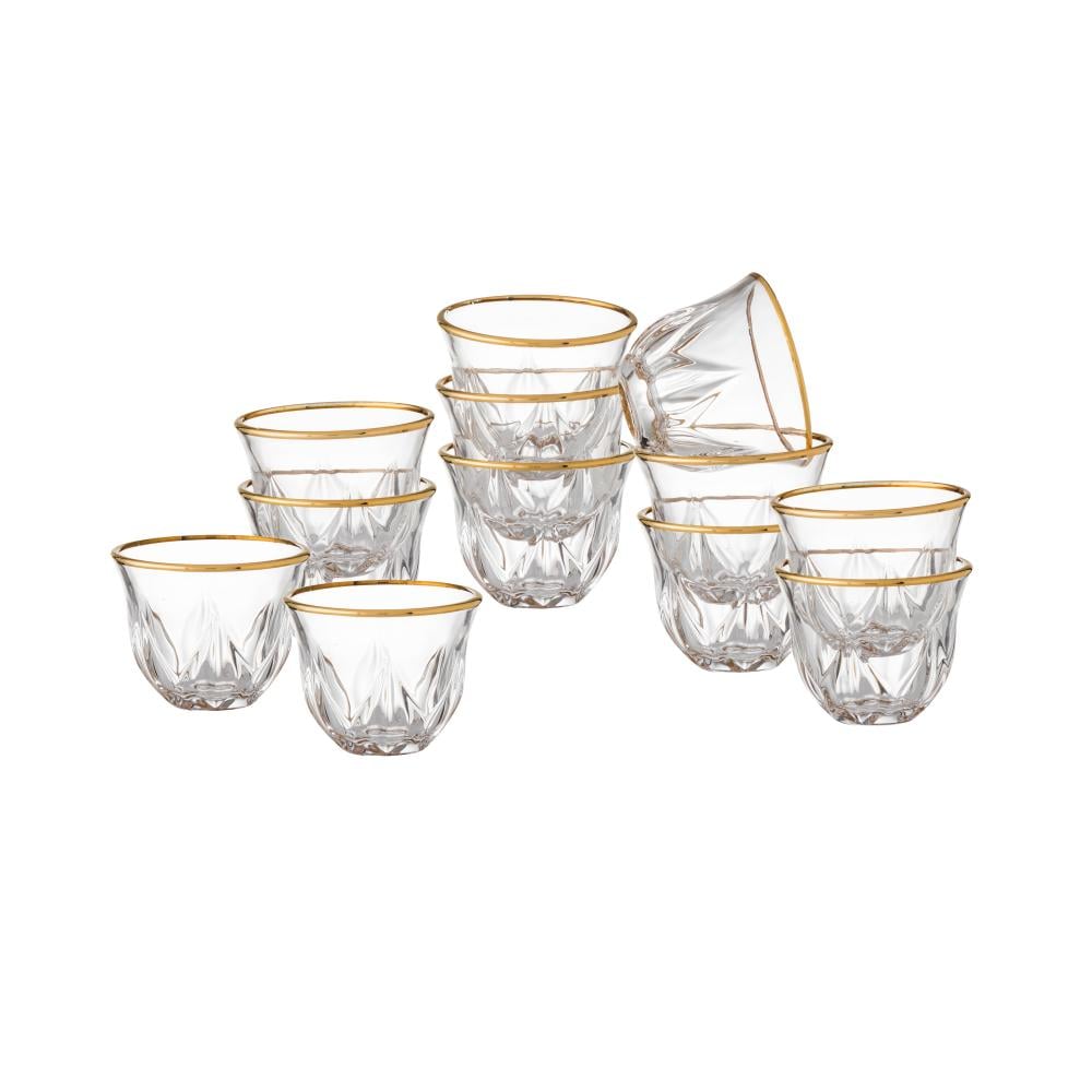 فناجين قهوة سعودي زجاج محجر ذهبي 12 قطعة