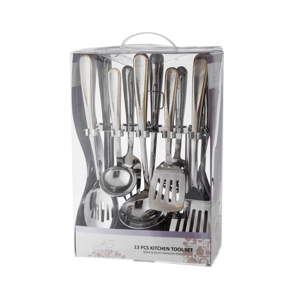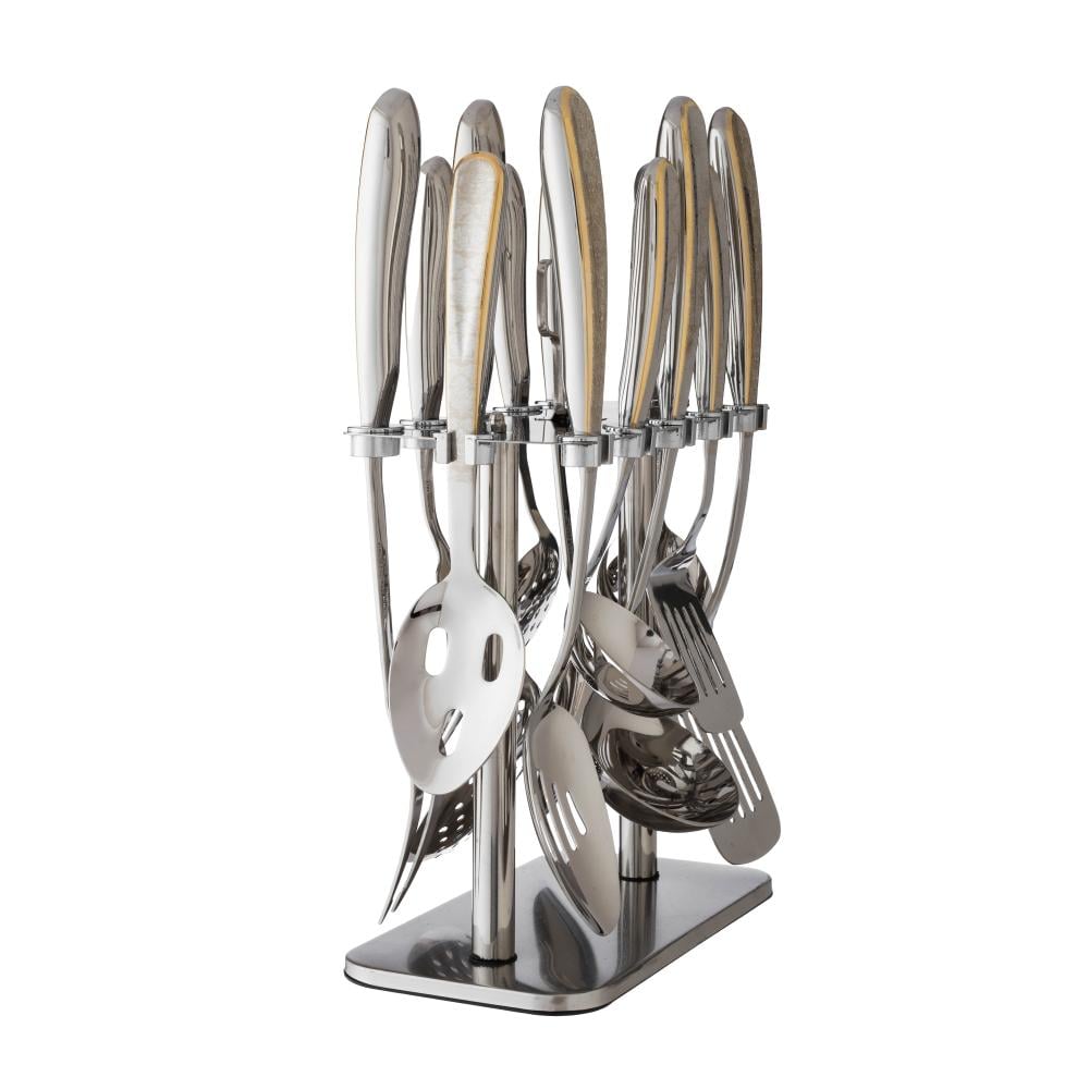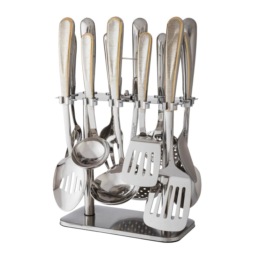 طقم ملاعق غرف استيل وذهبي 13 قطعة مع استاند