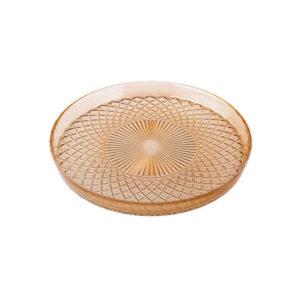صحن تقديم حلويات زجاج تركي مدور مقاس 32 سم