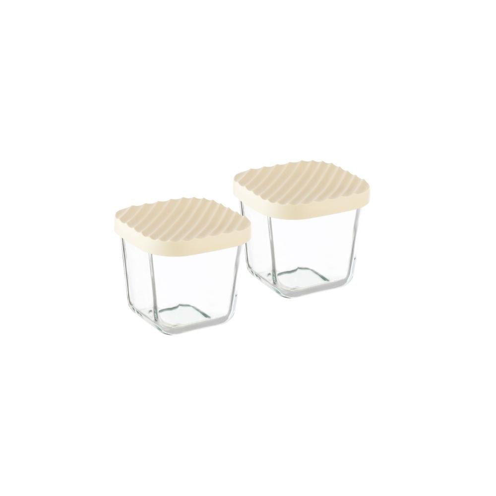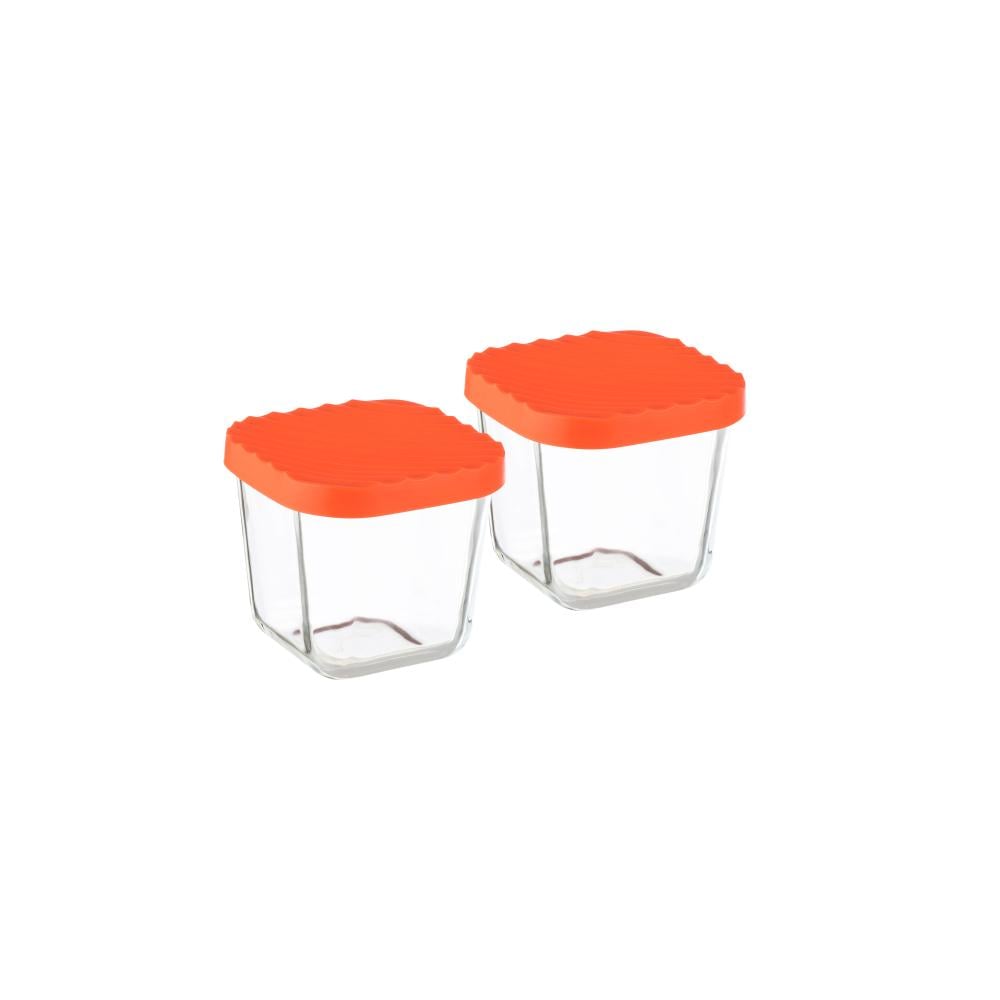 طقم حافظات زجاج حراري صغيرة بغطاء الوان متعددة 2 قطعة
