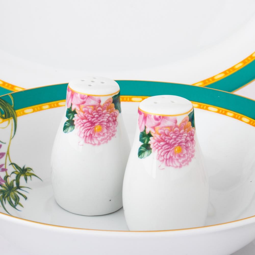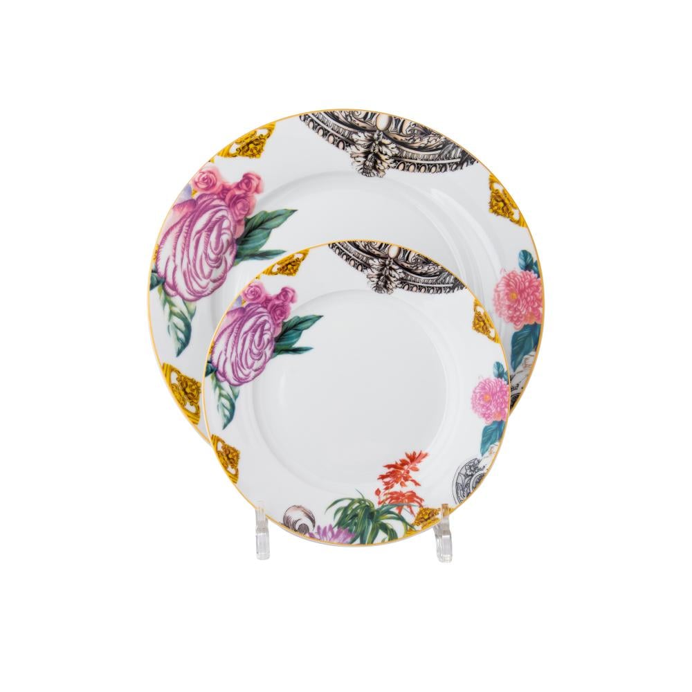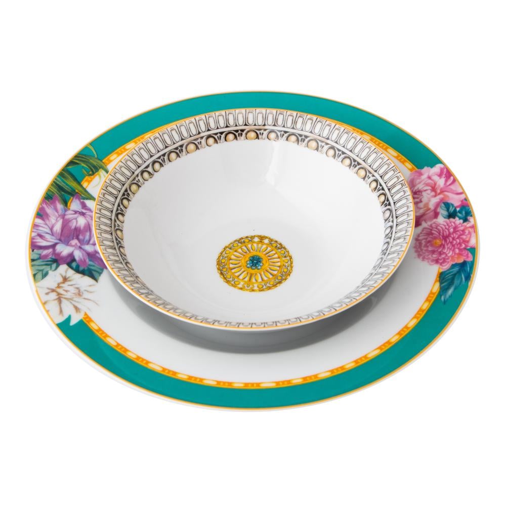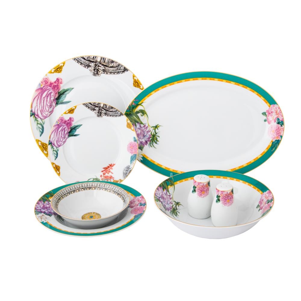 تم تصميم هذا الطقم بعناية ليوفر لك تجربة تناول طعام فاخرة وأنيقة. يحتوي الطقم على مجموعة متنوعة من القطع التي تلبي جميع احتياجاتك على المائدة. تشمل القطع أطباقًا رئيسية وأطباقًا جانبية بالإضافة إلى قطع خاصة مثل طبق التقديم وطبق السلطة
