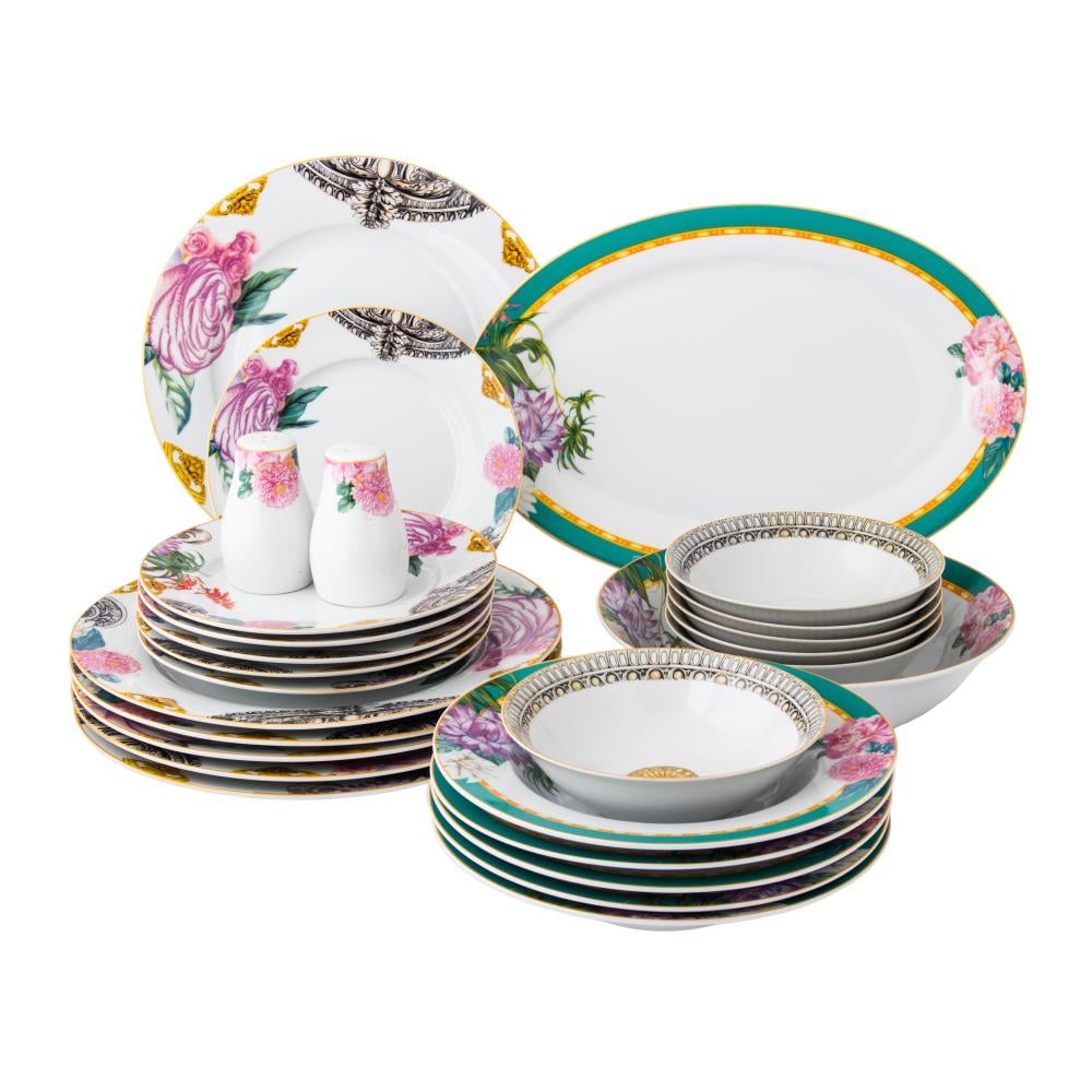 يسرنا أن نقدم لك طقم السفرة المميز المكون من 28 قطعة بنقشات الورود الرائعة، والذي يكفي إلى 6 أشخاص.