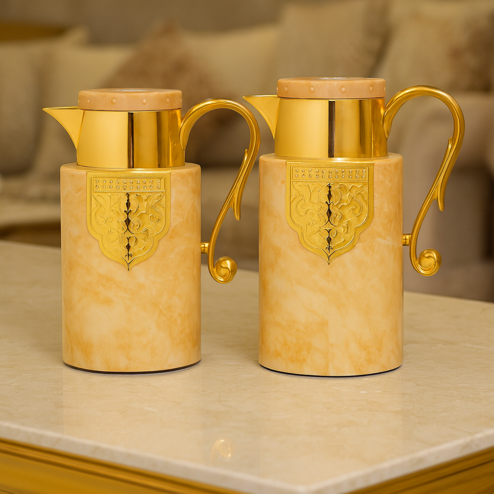 ترامس السيف الفخامة بيج ماربل وذهبي 2 قطعة