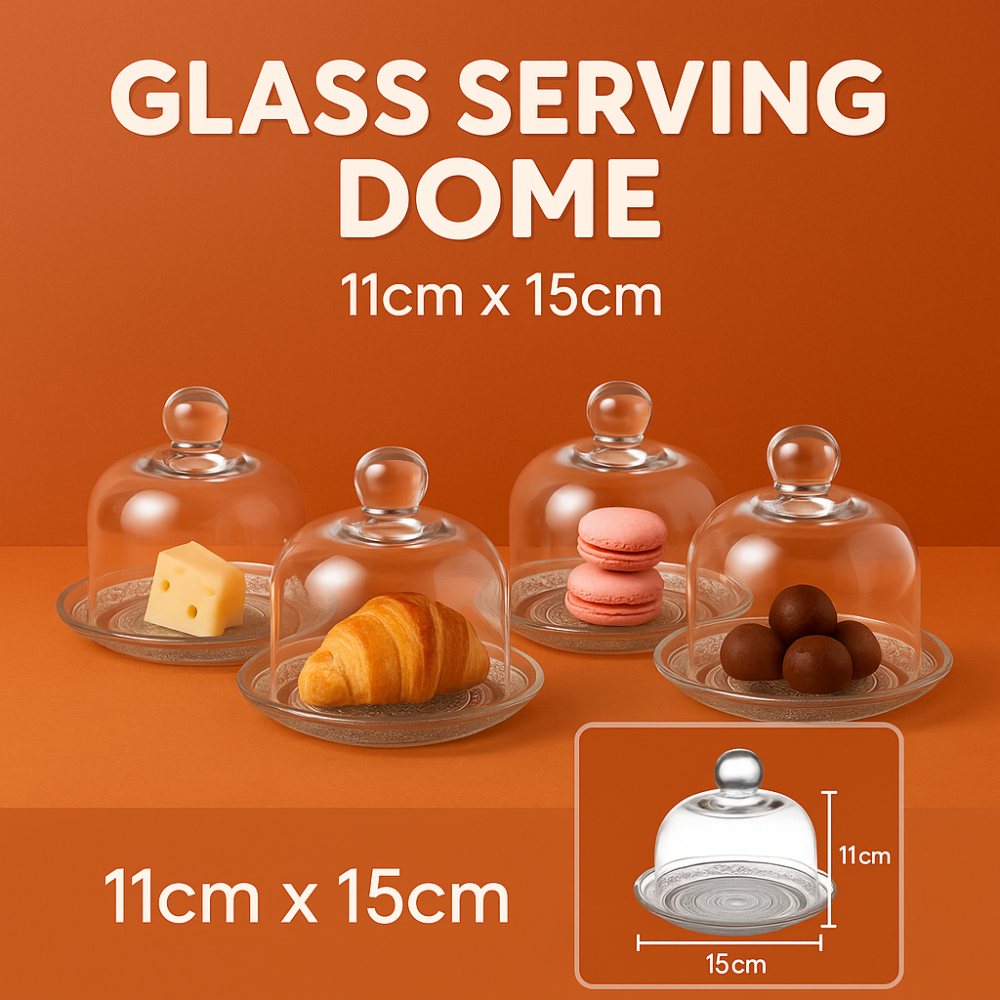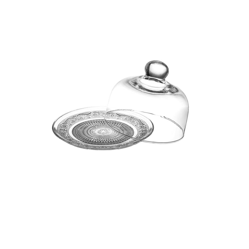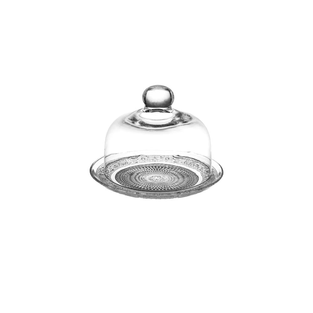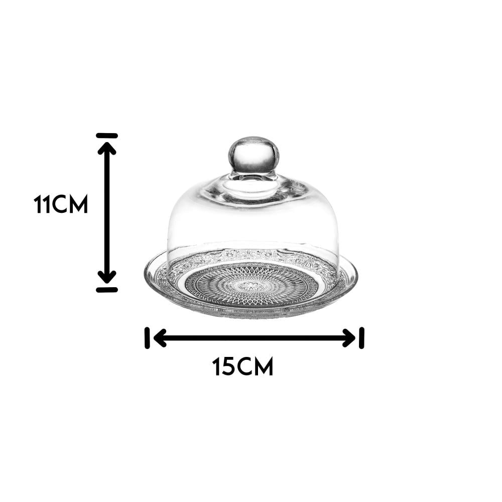 صحن كيك كونيا زجاج فاخر بغطاء متحرك ميني مقاس 15 سم