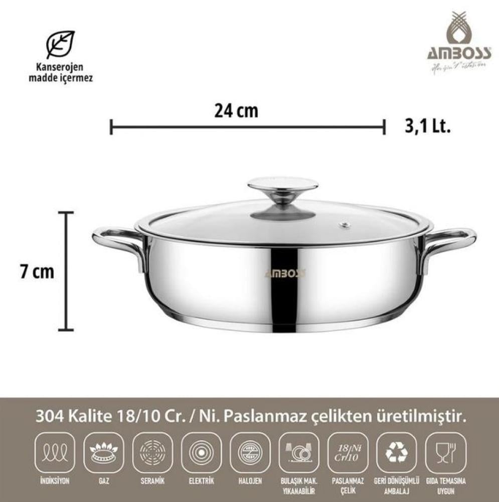طقم قدور استيل تركي 18/10 امبوس 8 قطعة غطاء زجاج