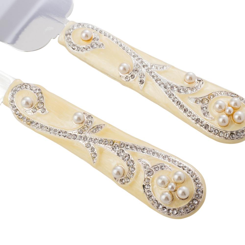 طقم أدوات تقطيع كيك مكون من قطعتين من المعدن الفضي