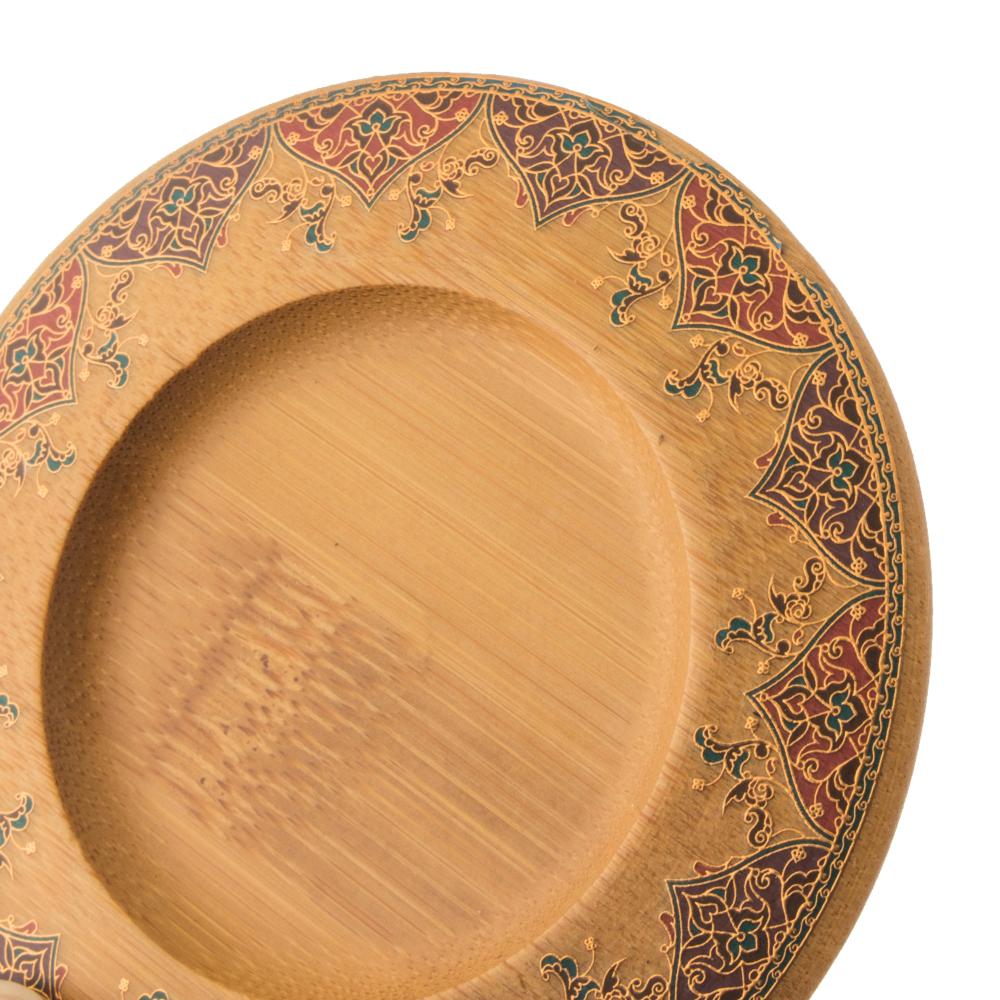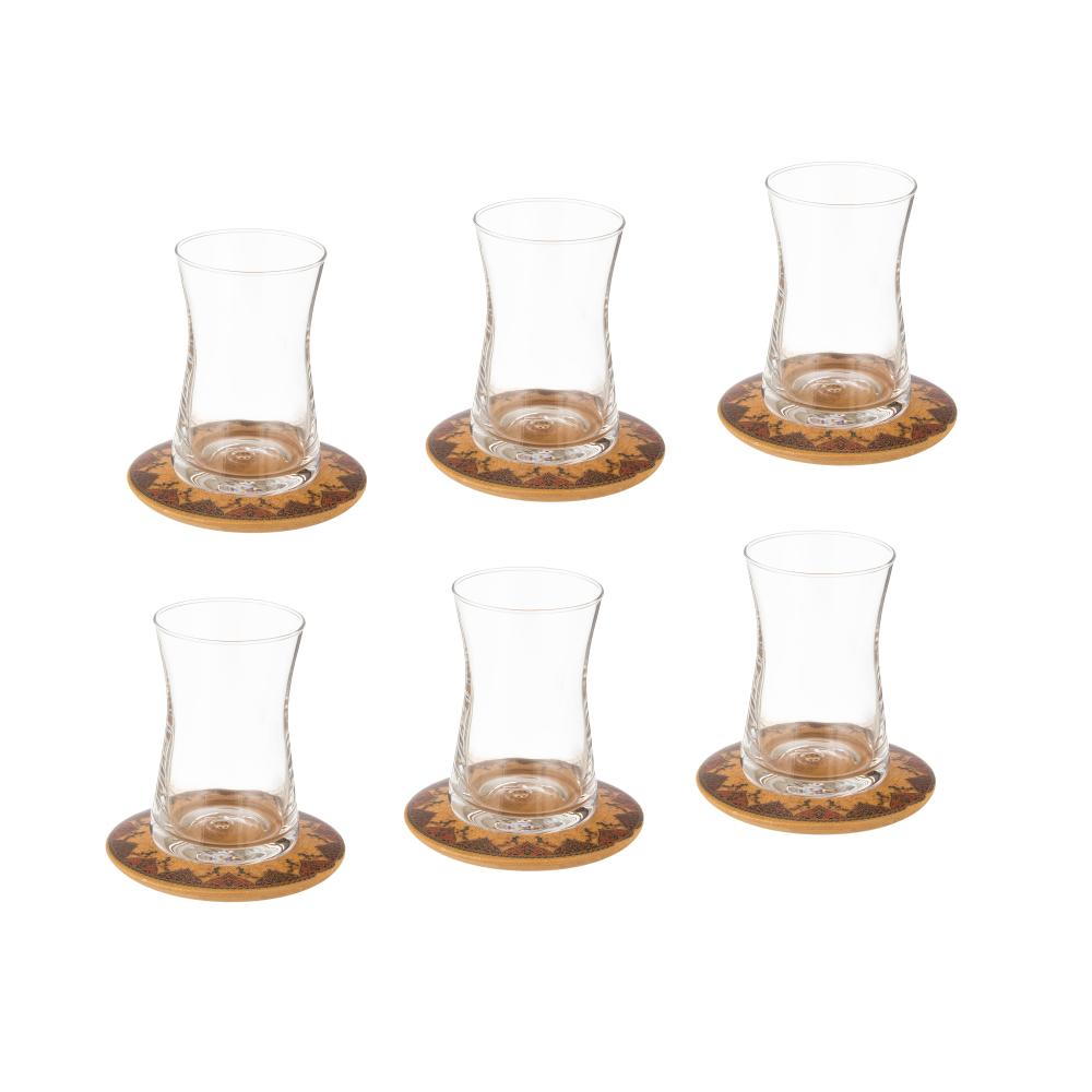 فناجين شاي زجاج شفاف مع صحن خشب بنقشات 12 قطعة