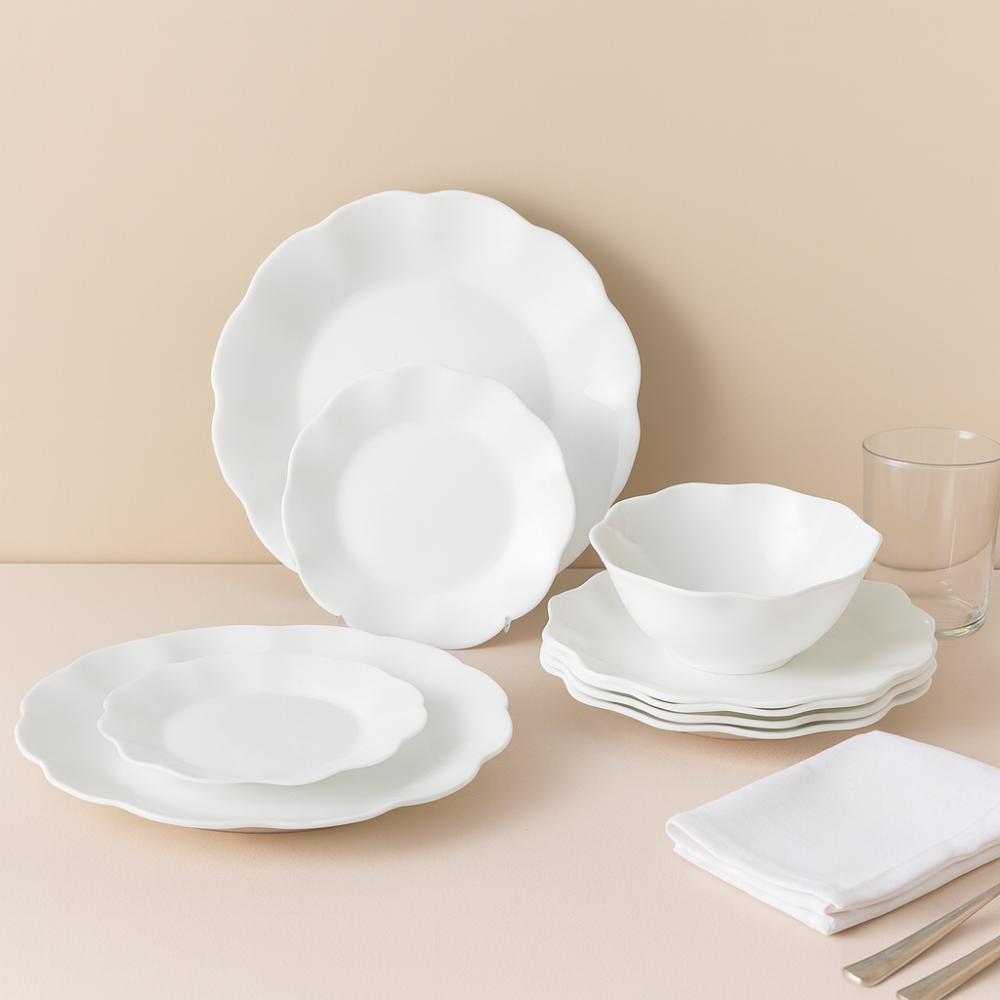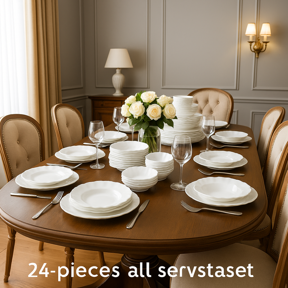 ✨ طقم عشاء أركوبال أبيض سادة – 24 قطعة تكفي 6 أشخاص ✨