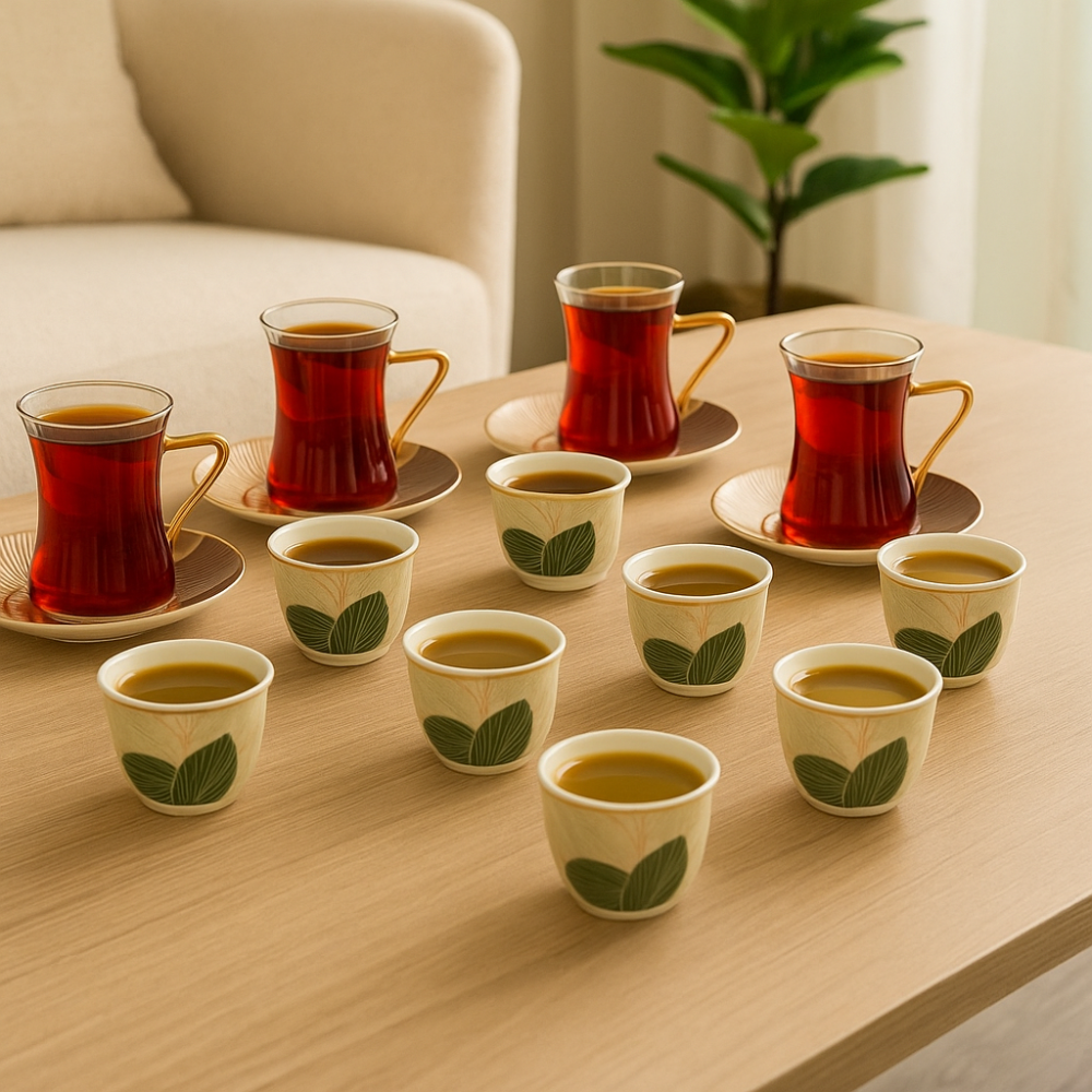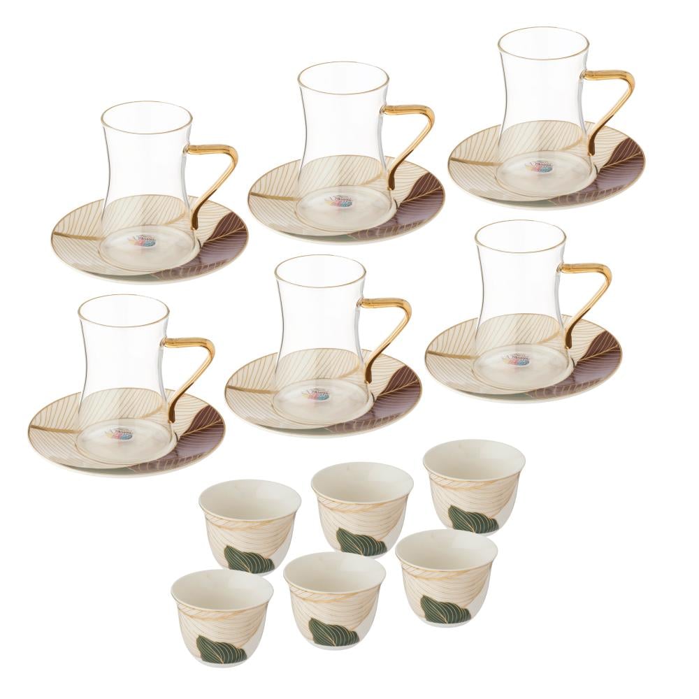 طقم فناجين شاي وقهوة 18 قطعة بورسلان فاخر اوراق الشجر ذهبي